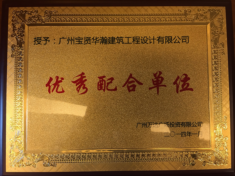 萬達(dá)2014年優(yōu)秀配合單位